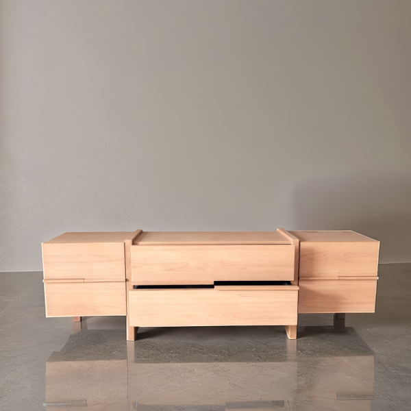 The Somerset Media Unit in a modern minimalistic style is a sleek, functional, and timeless piece of furniture that combines natural materials with clean design. The six drawers offer ample storage for media accessories like remotes, gaming consoles, streaming devices, and cables, all while keeping clutter out of sight. This unit fits effortlessly into modern, Scandinavian, or Japandi interiors, combining utility with understated elegance.