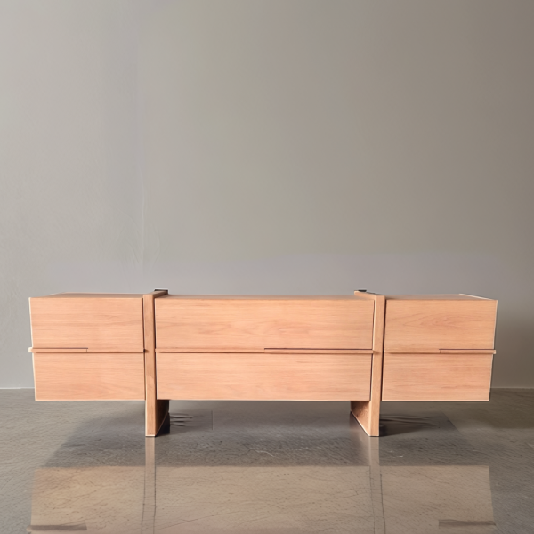 The Somerset Media Unit in a modern minimalistic style is a sleek, functional, and timeless piece of furniture that combines natural materials with clean design. The six drawers offer ample storage for media accessories like remotes, gaming consoles, streaming devices, and cables, all while keeping clutter out of sight. This unit fits effortlessly into modern, Scandinavian, or Japandi interiors, combining utility with understated elegance.